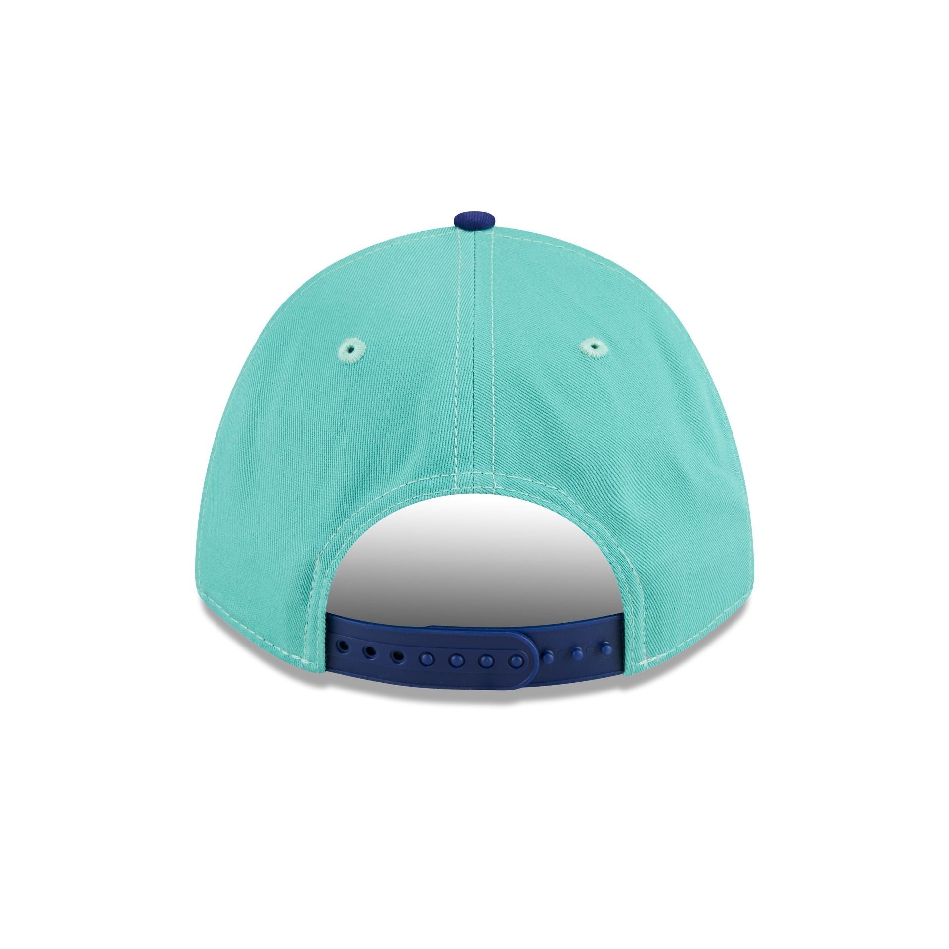 The New York Yankees Clear Mint 9FORTY M-Crown Adjustable Cap features an embroidered Yankees logo at the front panels with a snapback closure at the rear. Additional details include a 50th Year patch at the right-wear with a blue ink visor and a beetroot undervisor.